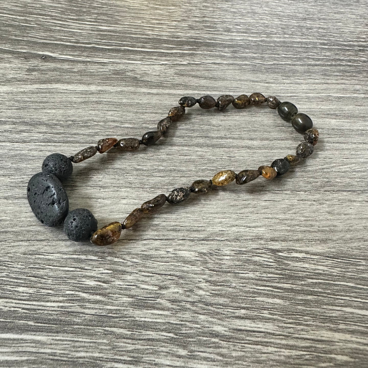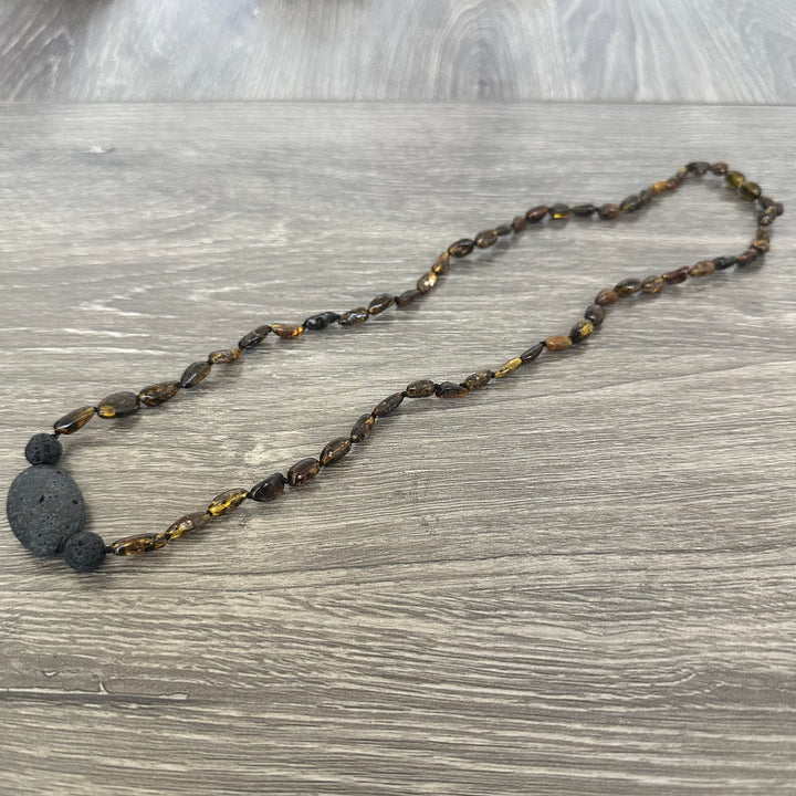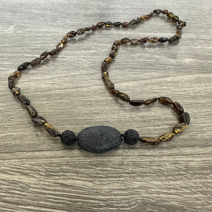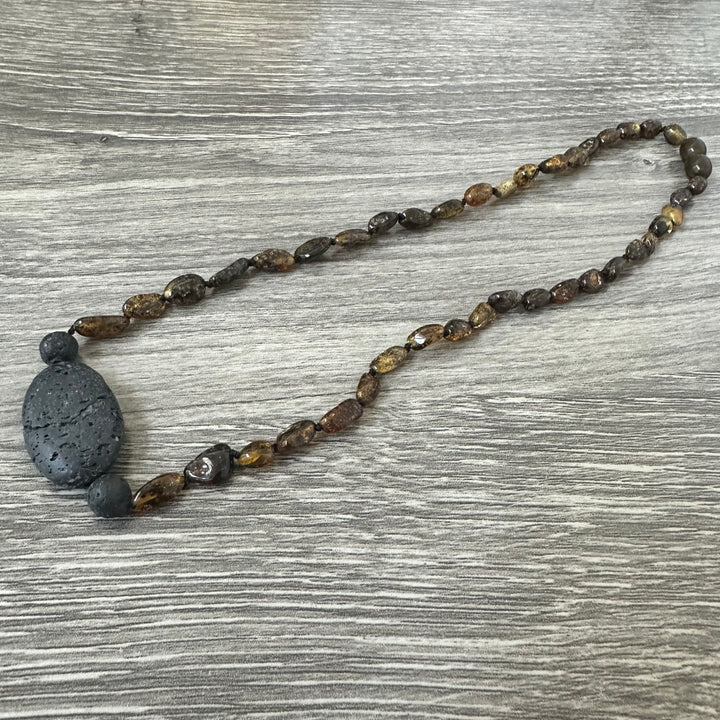 Baltic Amber Necklace Polished Olive Lava Rock Pendant - Limited Edition - until we run out!