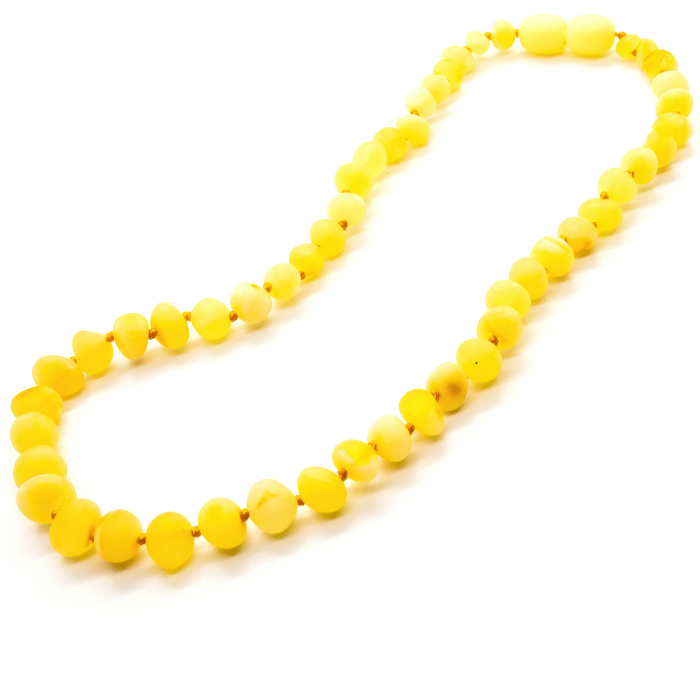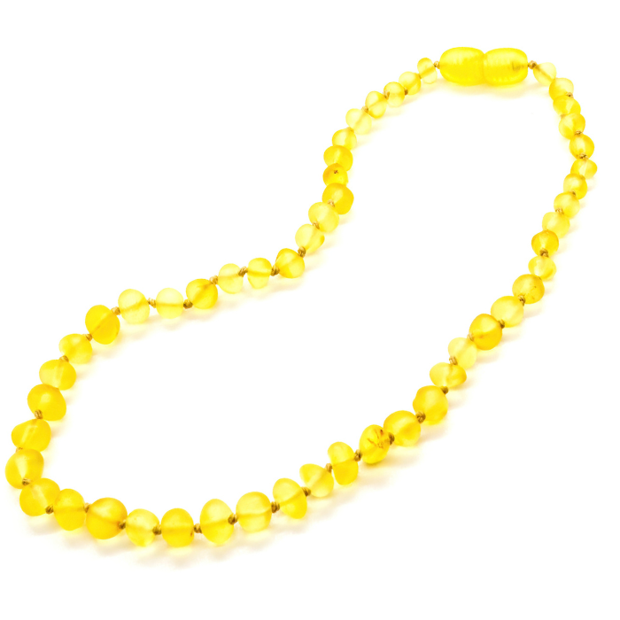 Baltic Amber Teething Necklaces are not for baby to chew on, the Baltic Amber & other semi-precious gemstones releases microscopic amounts of oil, as it warms with the body's natural temperature, that is absorbed into the skin and bloodstream. Baltic Amber contains succinic acid (anti-fever, anti-inflammatory), the compound that gives Baltic Amber teething necklaces the therapeutic quality. **FOR CHILDREN UNDER 3***Baltic Amber Teething Necklace should be removed during naps and when unsupervised.