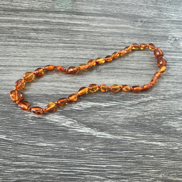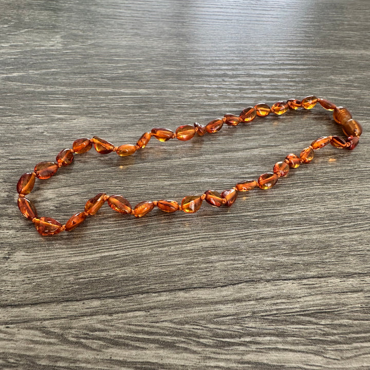 Polished Cognac Bean Amber Necklace - Limited Edition