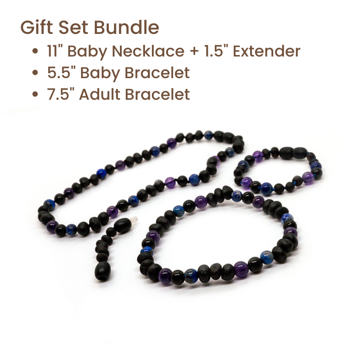 Baltic Amber Teething Necklace Rainbow Gemstones Gift Set Bundle