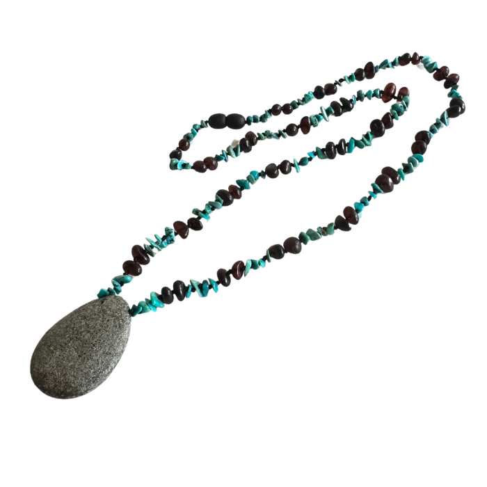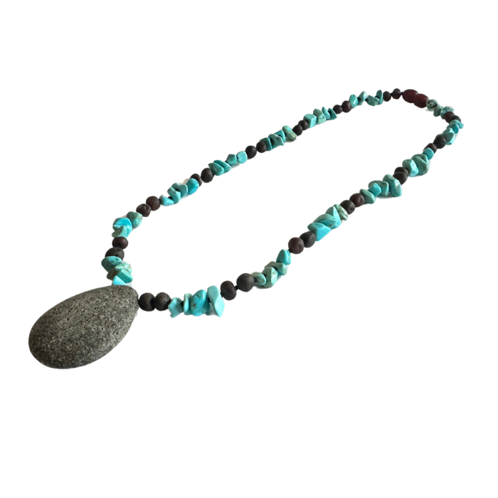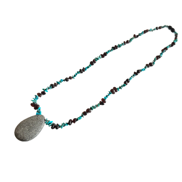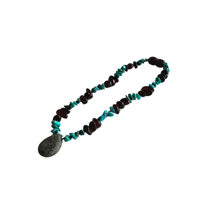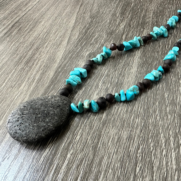 Baltic Amber Necklace Raw Cherry Turquoise Lava Rock Pendant - Limited Edition - until we run out!